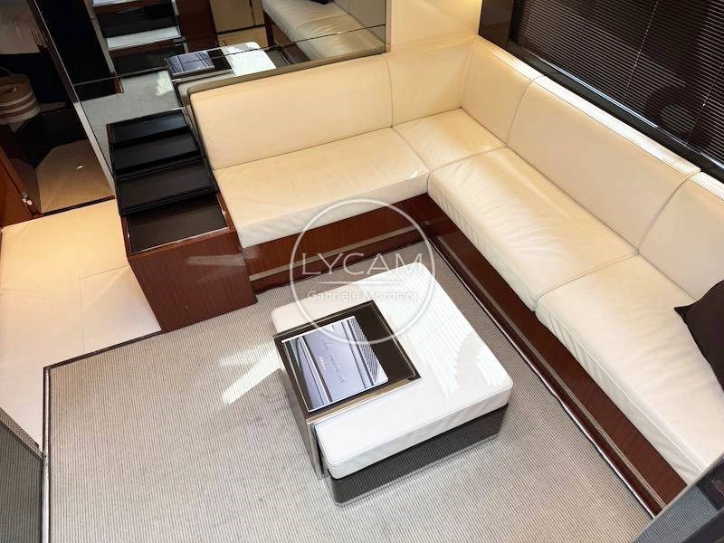 Below deck there is the dinette area on the starboard side with sofa and table for indoor meals while on the port side the galley. The sleeping area includes 2 cabins with the owner's cabin aft that exploits the entire width of the boat and equipped with its own en suite bathroom. The VIP cabin is in the bow, also with a dedicated bathroom.