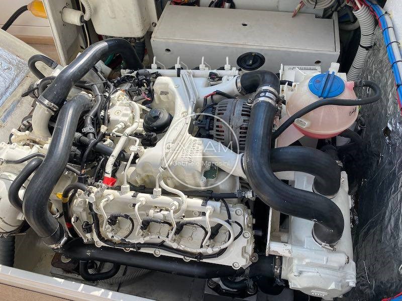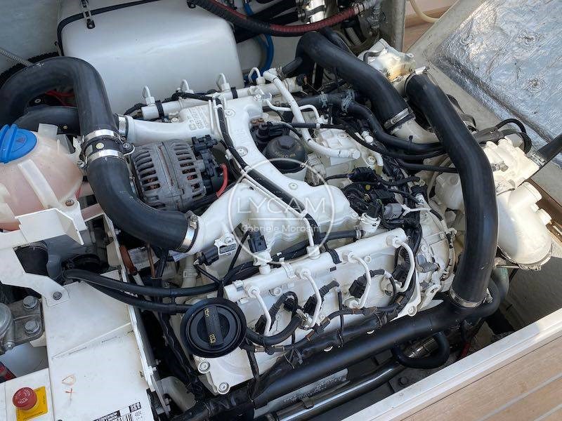 2020: gelcoat side painting, solid teak transom (30 coats of paint), dinette floor in polished teak, interior upholstery in bleached oak, exterior upholstery in sky, carpet to protect the teak, new electrical system, new Fusion bluetooth stereo, new induction hob, new fridge, new blue underwater light, bathroom with shower and toilet, engines landed and accurate servicing performed, electronic throttle