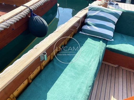 The Utility Portofino of the Mussini Shipyard has the elegant and comfortable shape of the pleasure boats that sailed the Gulf of Tigullio in the thirties. This boat is handcrafted with precious woods and is finished with great care in every detail.