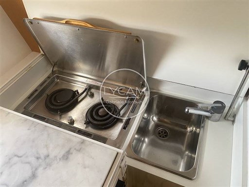 Below deck: equipped galley; Private bathroom with shower and electric toilet; Open plan cabin with 4 beds.