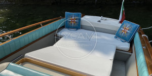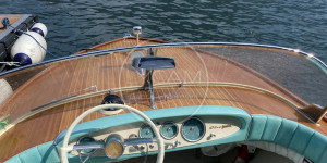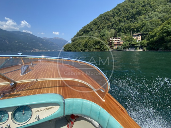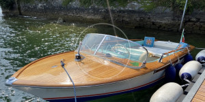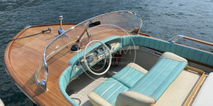 The Junior was called the "bomb of youth", a small-sized boat with a timeless, despite the limited extent, produced in 626 units until 1972. This vintage speedboat is totally and maniacally restored. List of works carried out in 2007. This is the list of works carried out: reconstruction of the bottom, scraping of the old paint, sanding and application of 24 coats of paint; refurbishment of interior upholstery and seats; revision of tools; reconstruction of the electrical system; painting of bilges, total chrome plating of brass accessories, engine overhaul. This Junior is currently in very good condition and running very well, used only in fresh water. Further information on request.