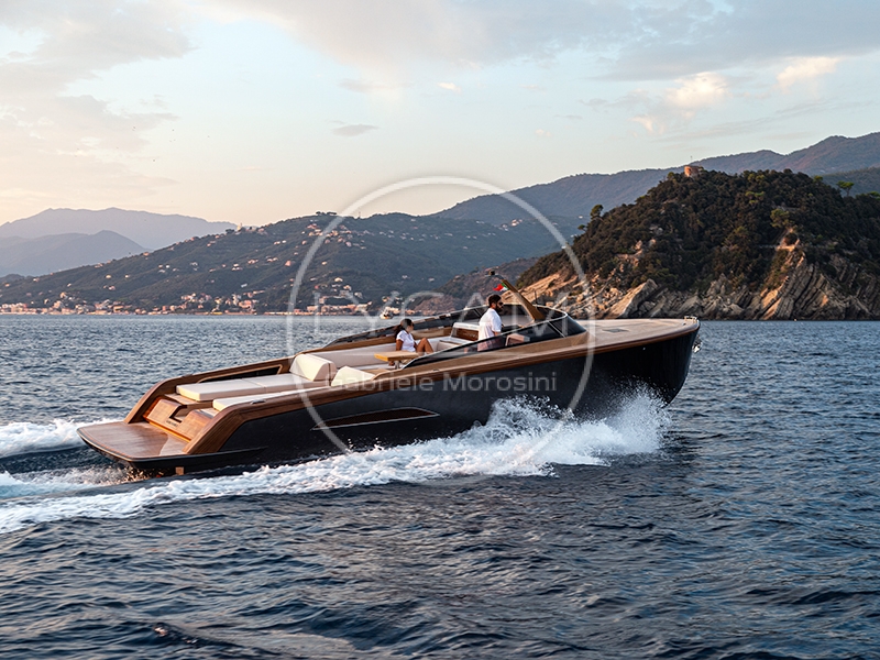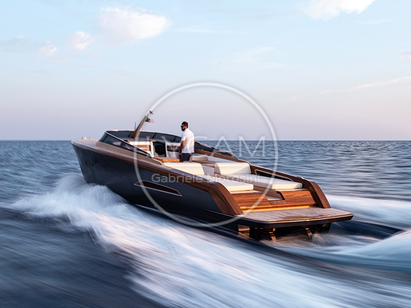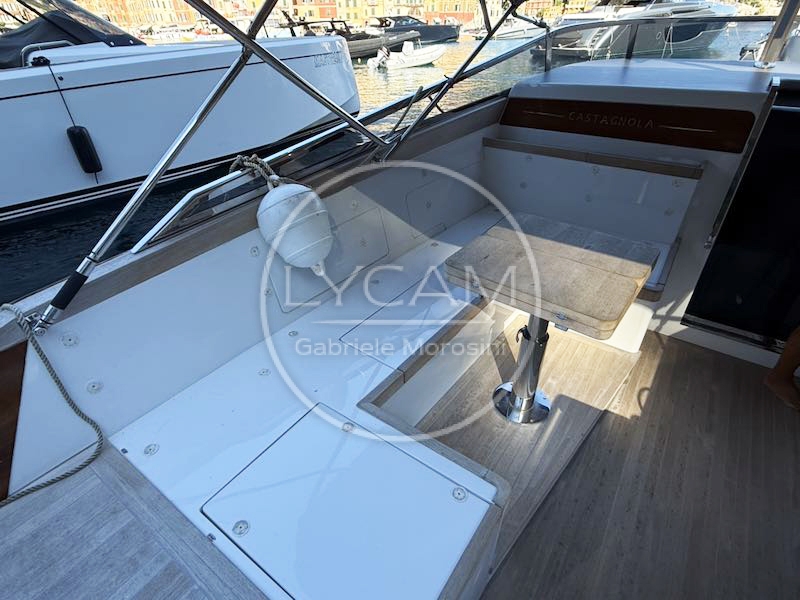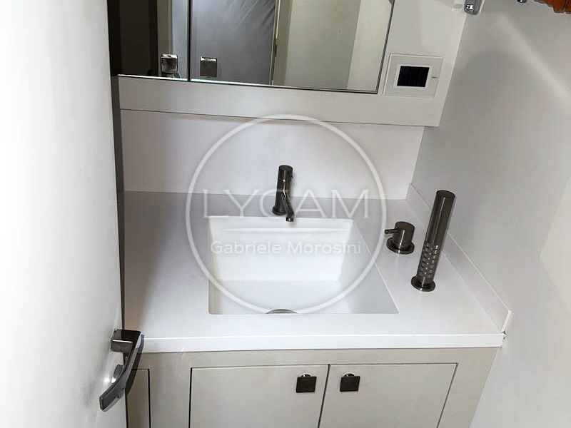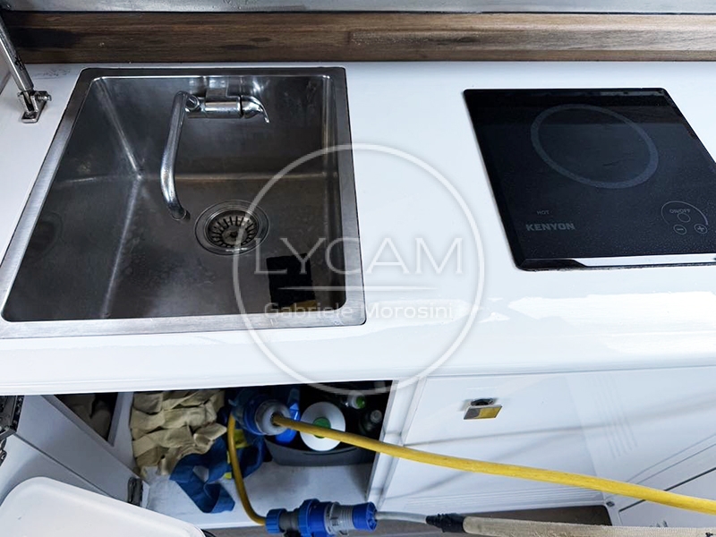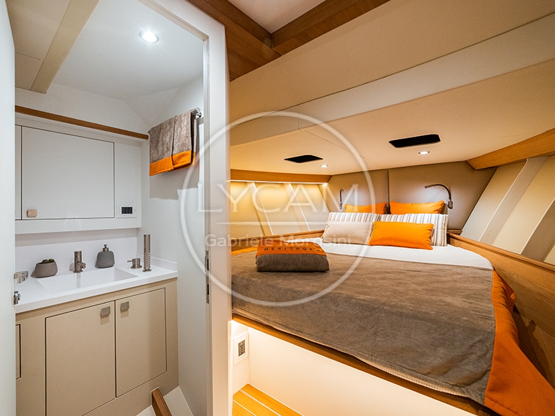 In the lower deck, on the left, there is the toilet, while in the bow there is the owner’s bed