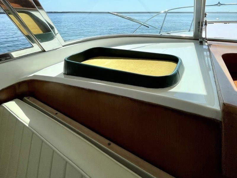 Nato da un insolito gemellaggio tra l’iconica Riva e l’americana Bertam, il 25’ Sport Fisherman è una barca che partecipa attivamente nel passaggio tra epoche. Siamo verso la fine degli anni ‘60 e Riva, su licenza Bertram, produce un motoscafo a suo modo innovativo, con spazi agevoli, destinati ora a facilitare i movimenti, a offrire ampio respiro, piuttosto che limitare l’utenza al ruolo di solo passeggero.