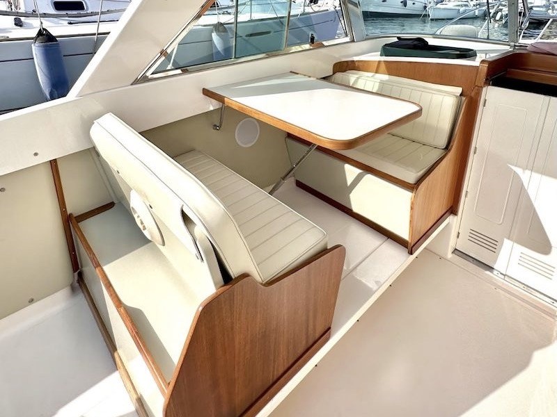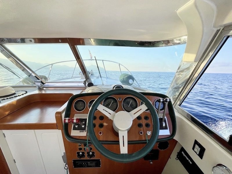 IMPIANTO ELETTRICO/ELETTRONICA: revisione completa impianto e quadro elettrico 12V - 2021, nuova linea 220V con caricabatterie - 2021, nuovo impianto alimentazione linea strumenti - 2021, linea strumenti NEMEA 2000 - 2021, PLOTTER RAYMARINE AXIOM – 2021, Cartografia MEDITERRANEAN & BLACK SEA MSD NAV+, ECO RAYMARINE - 2021, VHF RAYMARINE – 2021, Antenna BANTEN 1,5m - 2021, AUTOPILOT RAYMARINE - 2022, RADIO FUSION - 2021, ALTOPARLANTI HI-FI FUSION - 2021 (6 dinette/cuccetta/fly), separazione linee batterie motore/servizi - 2022, batteria Servizi "Deep CYCLE 160Ah - 2022, batteria Motore 120Ah - 2021, nuovo parallelo batterie manuale (emergenza) - 2021, nuovo impianto cicalini emergenza pressione olio temperatura ad invertitori inseriti - 2023, prese, accendisigari ed USB pozzetto e FLY - 2023, relamping led - 2023