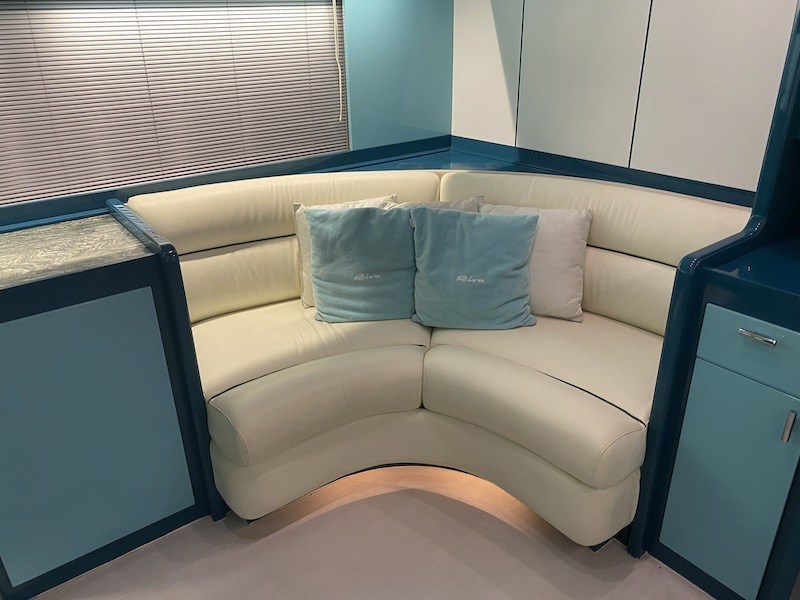 Questo bellissimo Riva Bahamas 58 #6 3 cabine più marinaio (modello che fu costruito soltanto in 19 unità tra il 1992 del il 1998 e per la maggior parte con 2 cabine) è una barca dalla storia molto interessante.