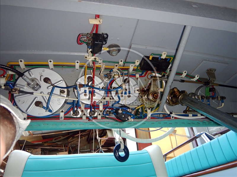 Strumentazione SW/Chris Craft con contagiri/conta ore, indicatore livello temperatura, amperometro e indicatore livello carburante; Leva gas motore; Leva invertitore