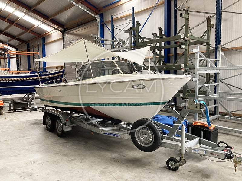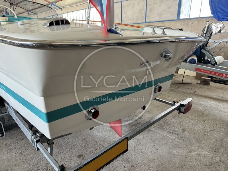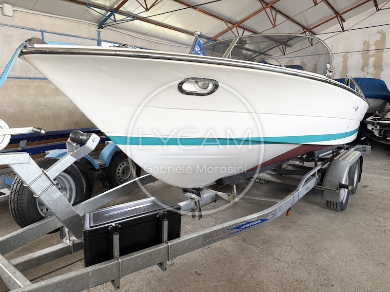 Luci di navigazione; Luce di fonda; Ancora; Pagaie in legno; Telo copertura barca; Dotazioni di sicurezza; Salvagente; Mezzo marinaio; Asta portabandiera; Cuscinerie prendisole; Estintore 2kg; Batteria; Parabordi; Scaletta bagno in legno; Tendalino pozzetto; Pompe sentina elettriche; Blower; Bitte ormeggio; Sirena; Specchietto retrovisore; Carrello doppio asse